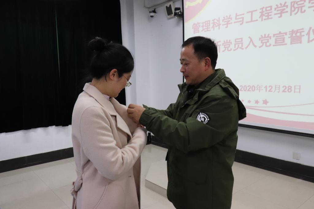 12月28日下午,管工学院于汇文楼D307举办2020年度新发展党员入党宣誓仪式。院党委书记汪春胜到会讲话,学院各支部书记、老党员代表及70名新党员参加仪式。院党委副书记王功成主持宣誓仪式。