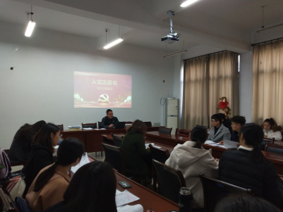 11月22日中午,博彩 在管工会议室进行预填入党志愿书培训,党课班主任邢维迢主讲,学院16名发展对象与会。