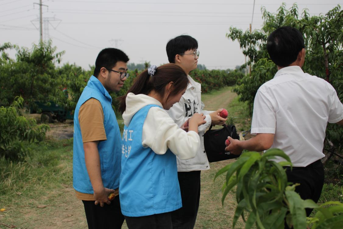 随后,团队走进村直播间开启“实战模式”。周智同学化身助播,手持新鲜黄桃,对着镜头介绍:“咱们的黄桃采用真空预冷技术锁鲜,48小时直达餐桌!”助播结束后,团队成员跟随韩继书记走进当地桃园,700亩桃园沉甸甸的黄桃挂满枝头,“我们计划打造‘桃园采摘+直播体验’的农旅项目。”韩继的规划引发热烈讨论,队员们结合专业知识,现场提出“建立冷链物流联盟”“开发VR云游桃园小程序”等建议。