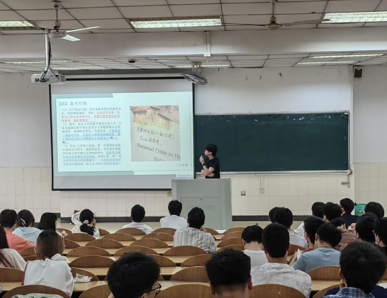 2022级在阶教201举办了以“奋进新征程,筑梦未来——身边的考研故事”为主题的考研经验分享会。本次活动邀请了2021级上岸南京航空航天大学、西南交通大学、大连海事大学等高校的优秀学生代表,活动由2022级辅导员焦朋庆主持。