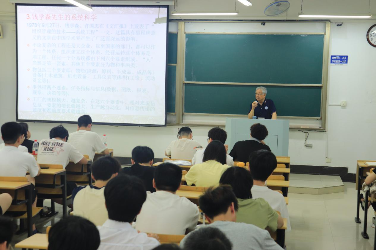 为深化学生对工业工程专业的理解,激发专业热情,引导青年学子在专业学习中领悟中国智慧、坚定文化自信,6月17日,学院关工委在汇文楼D112举办“读懂中国”专业认知讲座。讲座邀请中国工业工程专家、学院原工业工程系主任方庆琯担任主讲,活动由院团委书记赵玉婷主持,工业工程系教师代表钟玥、2023级工业工程全体学生参加讲座。