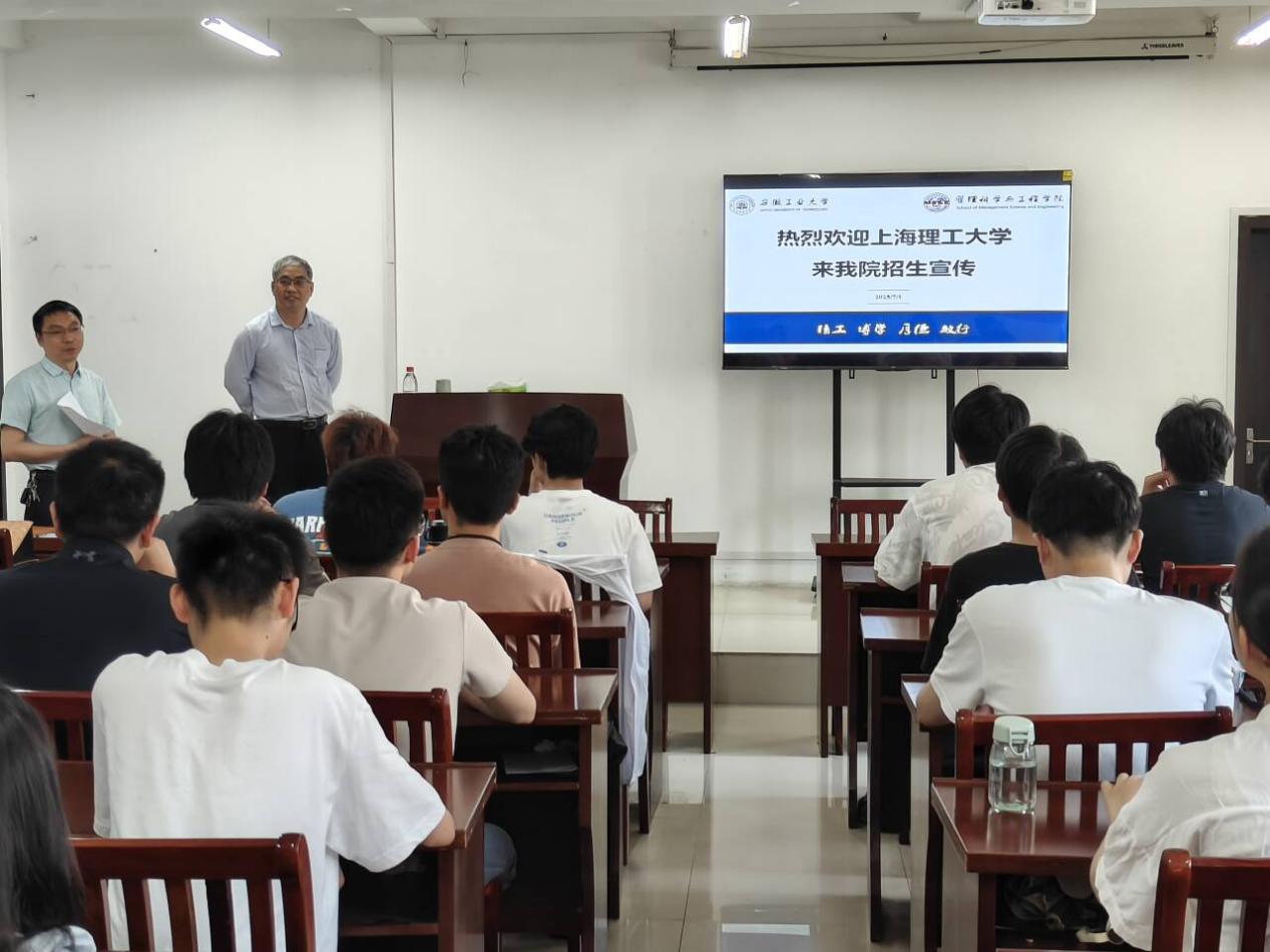 为帮助2026届毕业生更好地规划升学路径,了解考研政策,7月1日上午,博彩 在汇文楼A308会议室召开上海理工大学研究生报考专场宣讲会。上海理工大学二级教授、博士生导师叶春明作招生宣讲,活动由学院副院长(主持工作)王付宇主持。