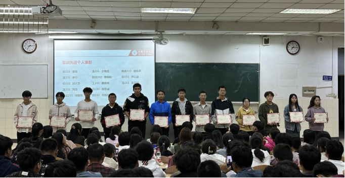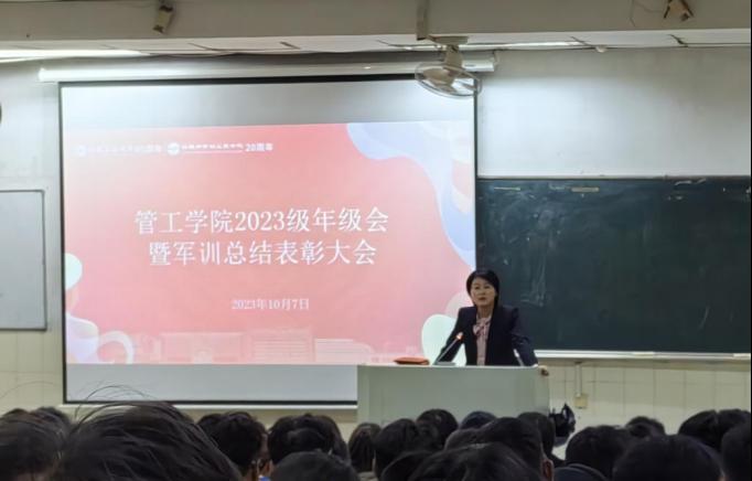 在阶教101开展2023级学习动员会暨军训总结表彰大会。会议由辅导员刘瑜、曹宇主持,管工学院2023级全体学生参加了本次大会。