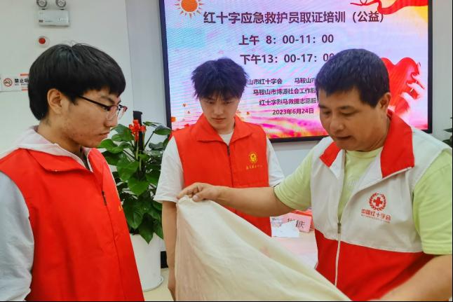 在完成了基础急救知识的学习后,我再次来到了马鞍山志愿服务中心参与红十字应急救护员取证培训,这次培训不仅有应急救护的理论知识,我还动手完成了纱布包扎等实际操作。生活中意外的情况是会随时发生的,但有了这次志愿活动教予我的急救知识,在某一天紧急情况发生时我们可以互相救助,志愿与爱心保护了我们与身边人的安全。
