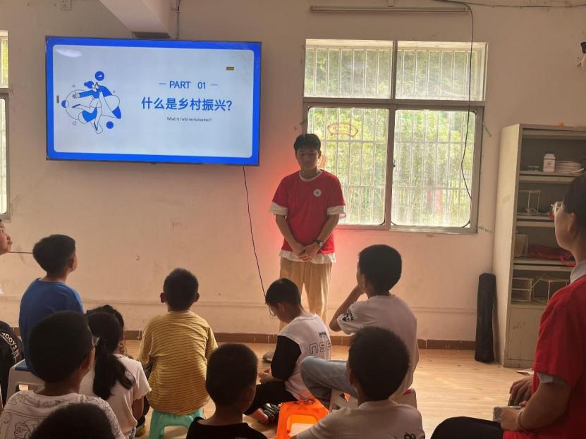乡村振兴是推动农村发展的重要战略。乡村振兴不仅仅是经济建设,更是通过传承和弘扬乡村文化,重塑乡村精神风貌,提升乡村在全球文化传播中的地位和影响力。宣传乡村振兴可以促进城乡交流与合作,打破城乡二元结构。通过宣传可以让城市居民更加了解农村,认识到城市与农村之间的互补关系,促进城乡资源要素的有机流动,推动城乡一体化发展。在我们队员实践过程中,我们对留守儿童们进行了乡村振兴主题宣讲,通过这次宣讲来提升他们的乡村振兴素养,来在他们小时候就埋下乡村振兴思想的种子。