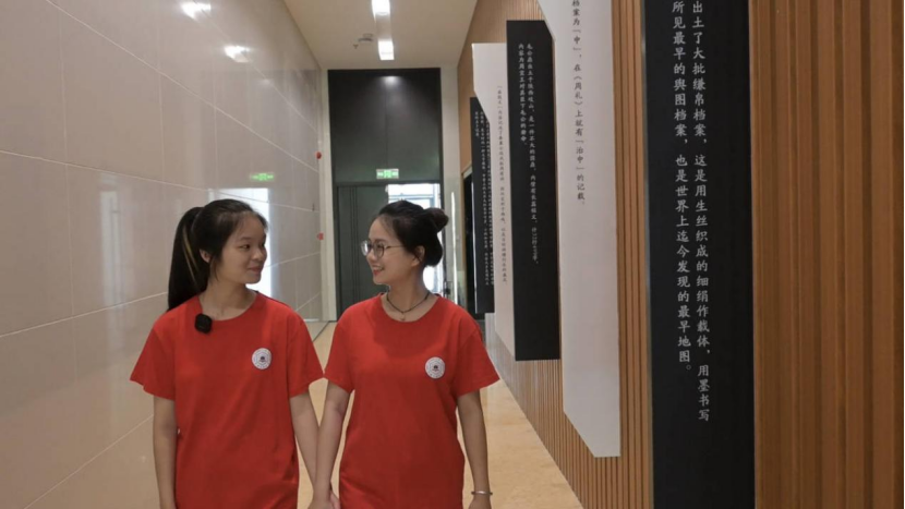 图为实践队员在讲解员带领下所见的创新之城、五群十链介绍展板。中国青年网通讯员 朱泽静 摄