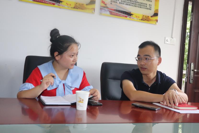 图为实践团队队长正在与团县委书记交流 骆政洁摄