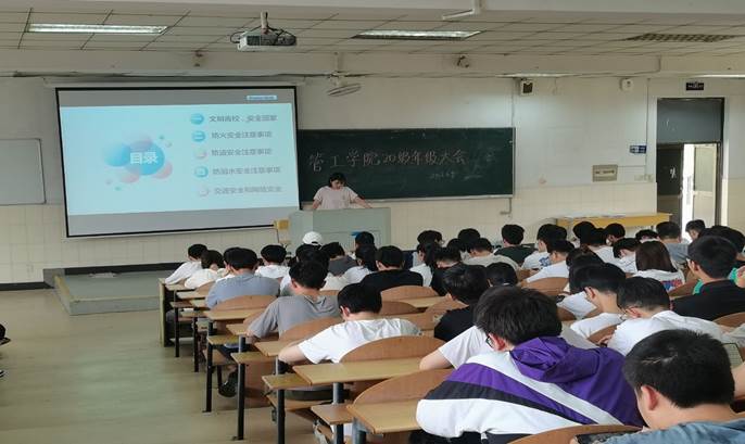 为落实学校有关假期安全教育工作要求,增强学生安全意识,确保学生返乡工作有序进行,6月9日,管工学院2020级于阶教101召开了暑期安全教育年级会。2020级辅导员杨金星、李军慧以及全体同学参与本次会议。