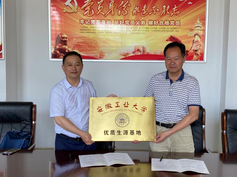 工作组与当涂一中校长、副校长及高招工作负责人进行了对接,认真细致地介绍我校2021年的招生计划,历年招录分数线、学校特色专业、学生培养成果等方面的情况。共计发放招生简章、宣传材料100余份,并和当涂一中签署了“优质生源基地”建设合作协议,并代表学校进行了“优秀生源基地”的授牌仪式。