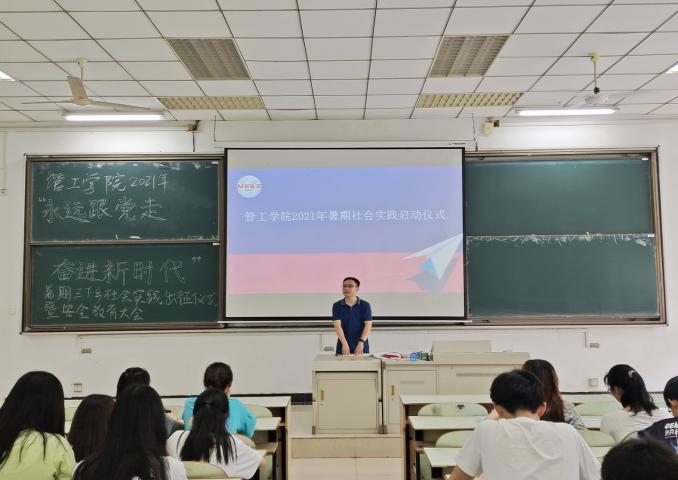 7月9日下午,管工学院2021年暑期社会实践活动启动仪式在教三南201举行,院党委副书记王功成、院团委书记万媛媛老师出席,学院2021年暑期社会实践队员到场参加。