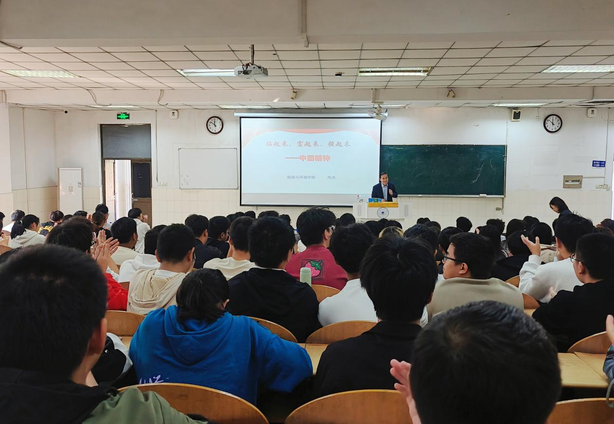于阶教101开展2024级新生入党启蒙教育,能源与环境学院凤杰老师主讲,会议由学院党委副书记、副院长、纪委书记赵颖主持,2024级全体学生参与。