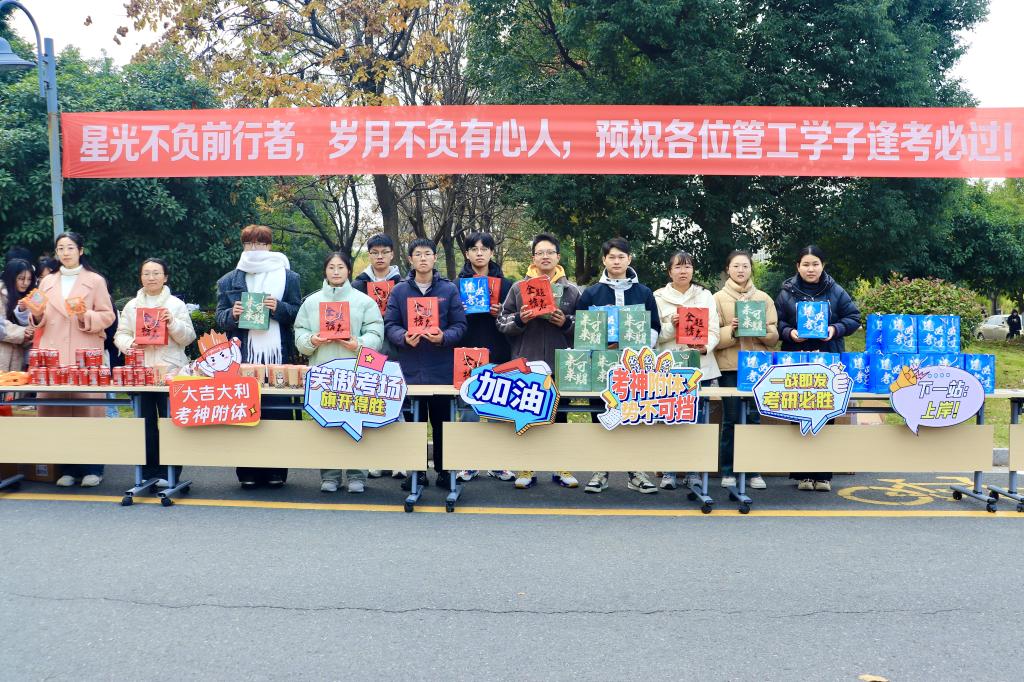 为缓解考研学子备考压力,增强学生迎考信心,12月9日下午,管工学院在秀山校区图书馆前开展了“温暖相伴,逐梦研途”考研慰问活动。学院党委书记王军,院党委副书记、纪委书记、副院长赵颖,毕业班辅导员任静、钱丹丹及2025届考研学生参加本次慰问活动。