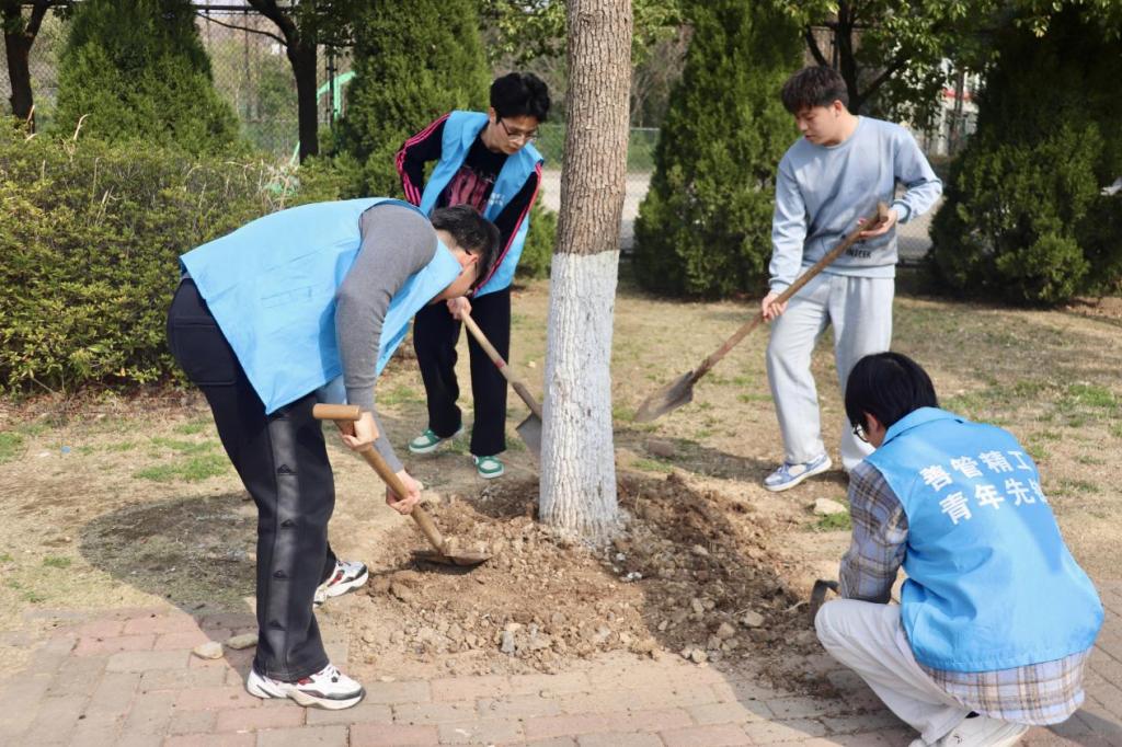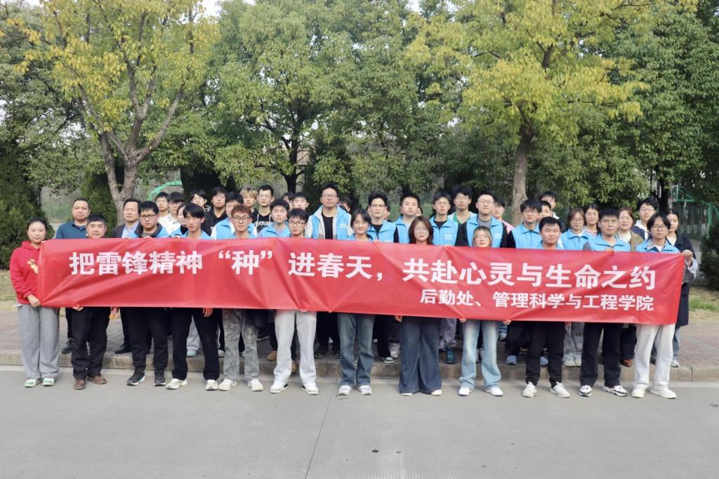 联合后勤处共同开展“把雷锋精神‘种’进春天,共赴心灵与生命之约”主题活动。后勤处老师以及院团委书记赵玉婷、24级辅导员李军慧、学生志愿者等60余人参与本次活动。