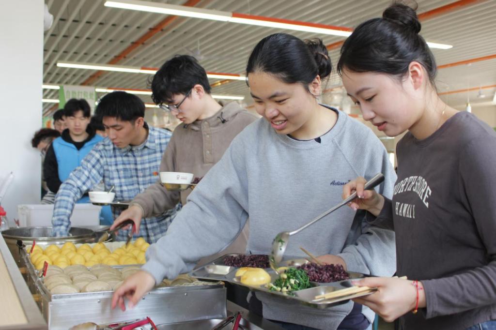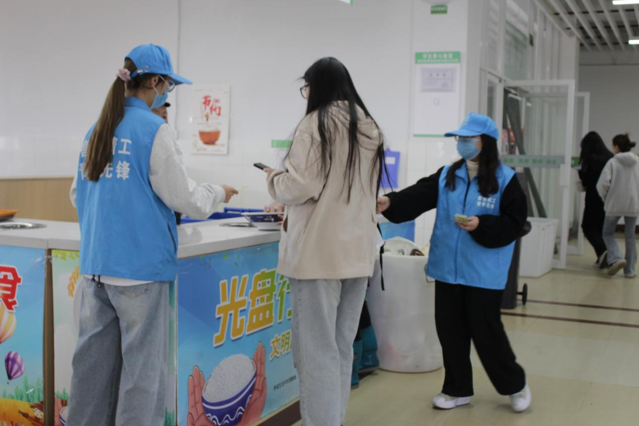 活动采取沉浸式劳动教育模式,通过“宣传•引导•力行”凝聚青年学子传承红色基因,培育勤俭美德。在“光盘行动护卫者”环节,志愿者通过巡回讲解与文明劝导,向用餐师生传播节约理念,并为践行“光盘行动”的师生颁发奖励餐券,当日累计发放500张。“食堂卫生守护者”行动中,志愿者协助工作人员完成餐具回收、桌面清洁与垃圾分类工作,维护了午间用餐高峰时段的食堂环境。最具特色的“红色饮食体验”环节,学生志愿者在食堂师傅指导下参与野菜分拣、食材清洗、红米蒸煮等工序,合作烹制出“清炒马兰头”“荠菜炒蛋”两道“雷锋菜”,以及“红米饭”“南瓜汤”“荞麦馒头”“玉米窝头”四道“忆苦思甜饭”。