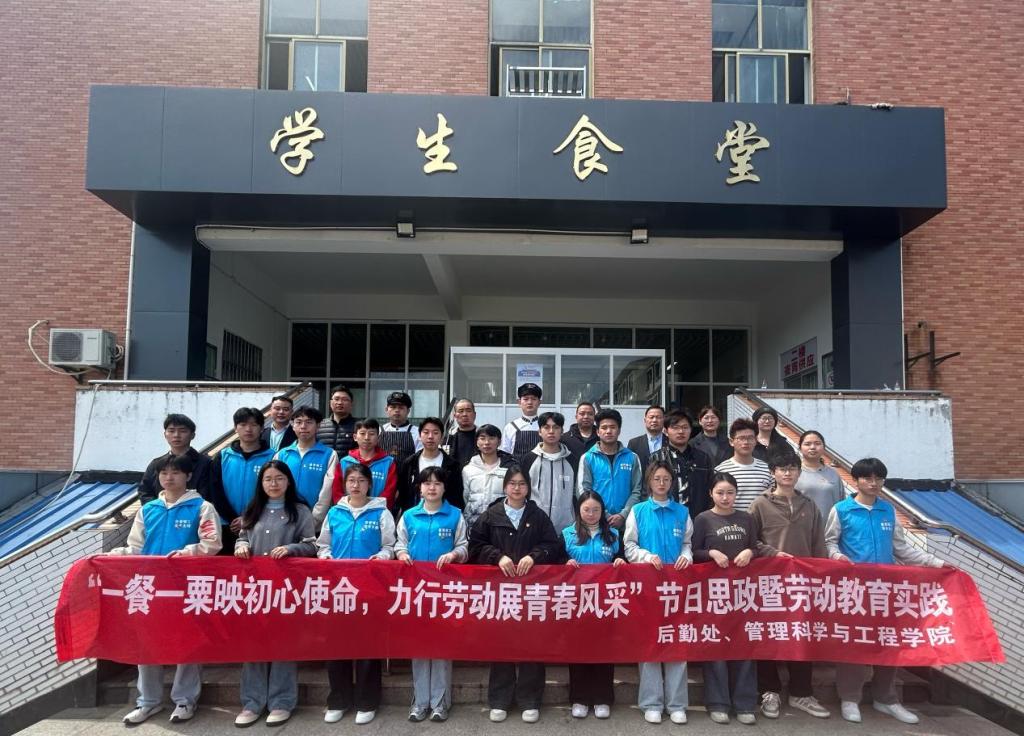 联合后勤处在第七学生食堂举办“一餐一粟映初心使命,力行劳动展青春风采”节日思政暨劳动教育实践活动。后勤处教师党员代表、学院团委书记赵玉婷、工业工程学生党支部书记钱丹丹、学生党支部党员代表、各年级学生志愿者等30余人参与活动。