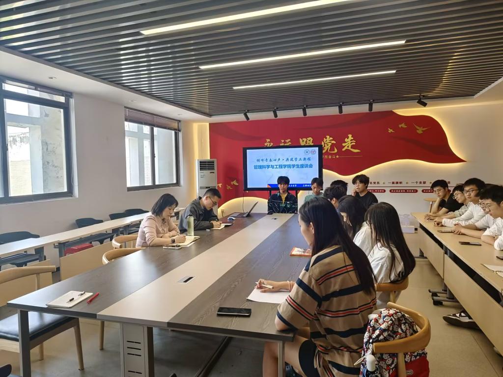 在汇文楼A502召开“倾听青春心声·共筑管工新程”学生座谈会,院党委副书记、副院长、纪委书记赵颖,辅导员曹宇,2023级学生代表参加此次会议。