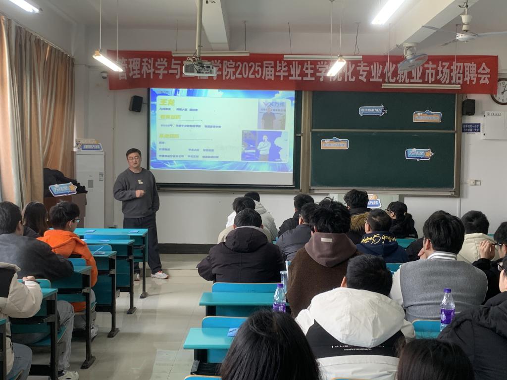2021级在教D402和501教室成功举办了学院化、专业化招聘会。本次招聘会邀请了万纬物流和瑞顺物流两家知名企业来校宣讲,作为学院深化产教融合的重要实践,本次招聘会通过企业宣讲、行业解读、互动交流三大模块,为2024届毕业生搭建起精准就业服务平台。招聘会前,学院党委副书记、纪委书记、副院长赵颖、毕业班辅导员任静、钱丹丹与企业负责人就招聘情况和后续合作进行了深入交流。