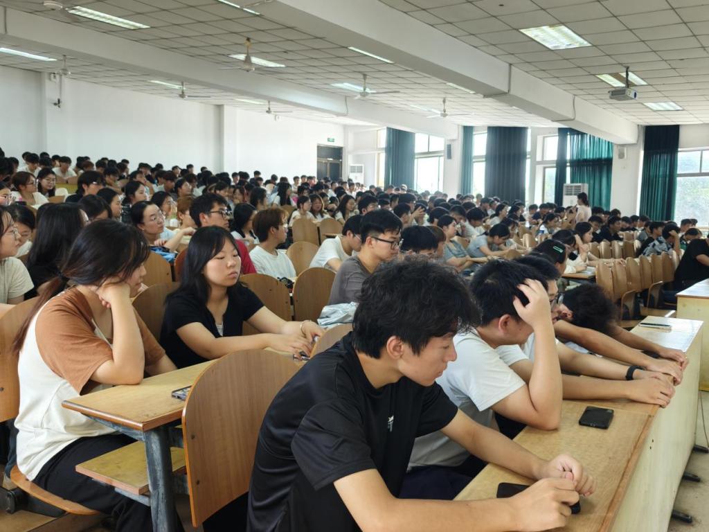 2024级在阶教101召开“新学期启新征程”年级会。会议由孙如梦、李军慧主持,2024级全体学生参与。