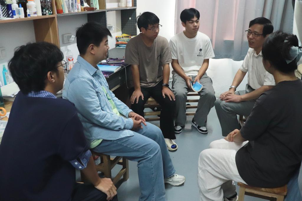 退休教师代表周传华,走进2025级新生宿舍,与同学们促膝长谈,为新生们注入了满满的动力。