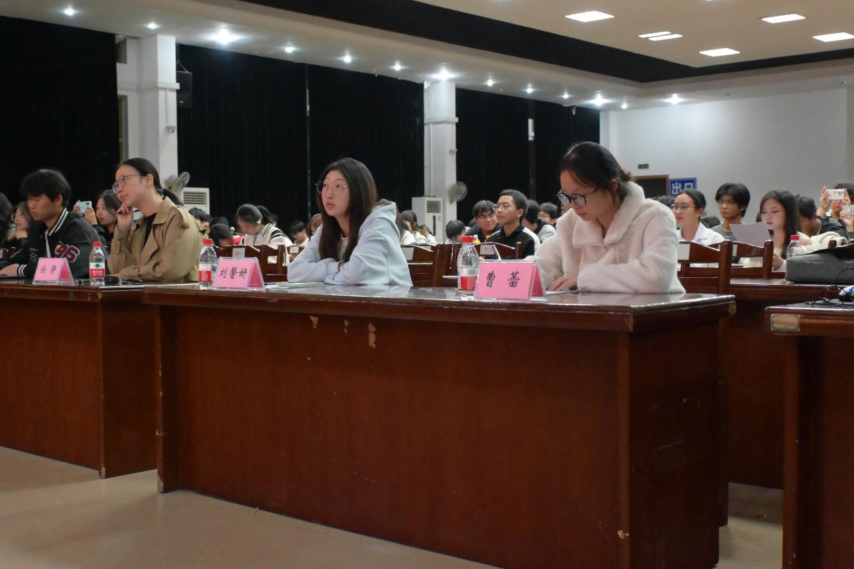 在东区六食堂四楼大学生活动中心举办2025年新生主持人大赛。25级辅导员任静、院团委学生会各部门负责人担任大赛评委。