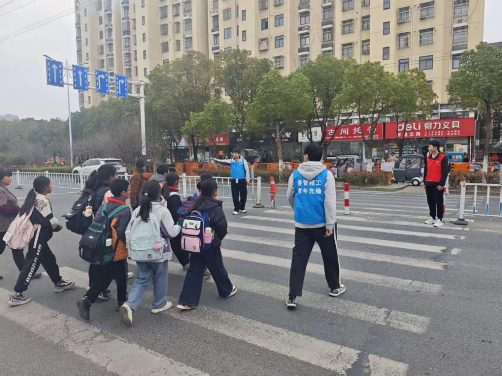 活动中,志愿者们分工协作、配合有序,各项服务稳步推进。面对社区墙壁上杂乱的贴纸和小广告,他们手持铲子、喷壶、抹布等工具,逐一耐心清理,并仔细擦除残留痕迹,确保不留死角,切实改善社区环境。在社区人行路口,志愿者们化身“爱心护行员”,密切关注路况,主动引导交通,耐心提醒小朋友“注意来往车辆”“快速通过斑马线”,同时协助家长对接孩子,减少道路停留时间,为社区出行筑起一道安全屏障。