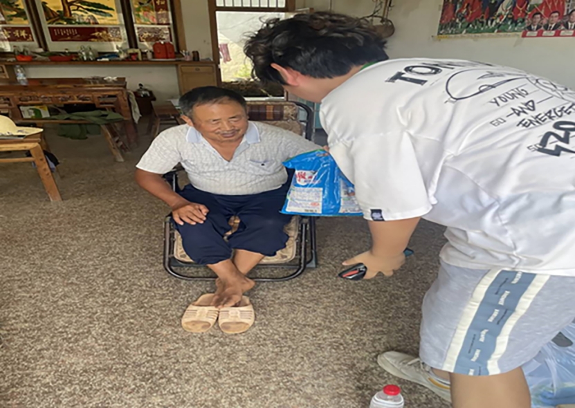 图为实践队员发放礼品感谢村民。中国青年网通讯员 陶恒 摄