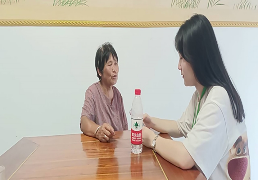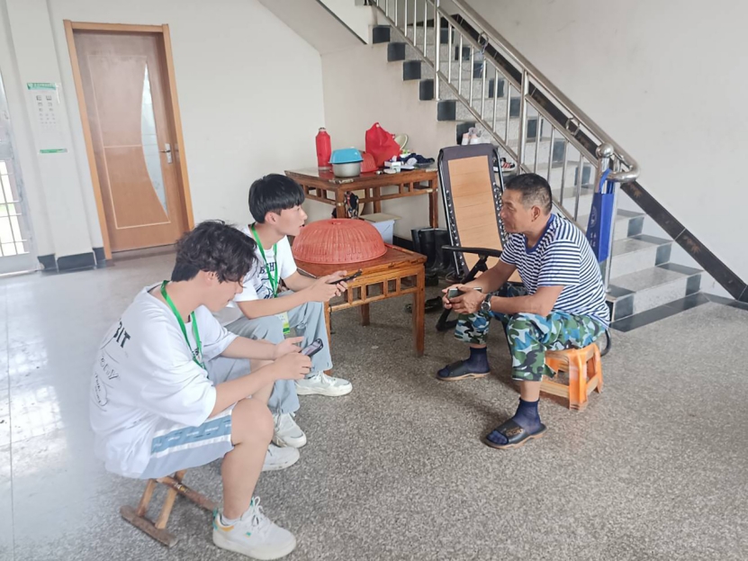 图为实践队员向村民提问有关兴圩村养老服务的问题。中国青年网通讯员 陶恒 摄