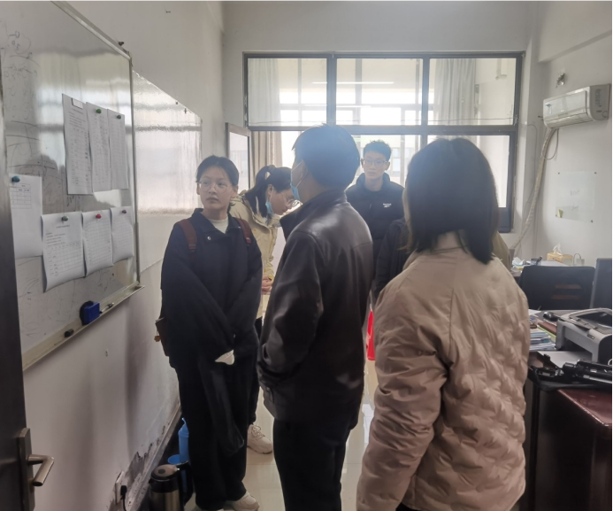 学工部领导先后走访了辅导员办公室和学院心理工作站,赵颖从全体人员值守情况、疫情防控措施落实、学生信息摸排、晨午晚检落实、学生线上学习状态以及毕业班就业情况等方面进行了汇报。