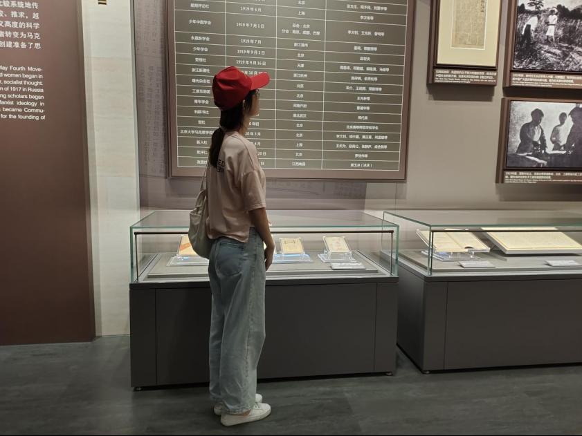 图为实践队员参观新文化运动刊物。