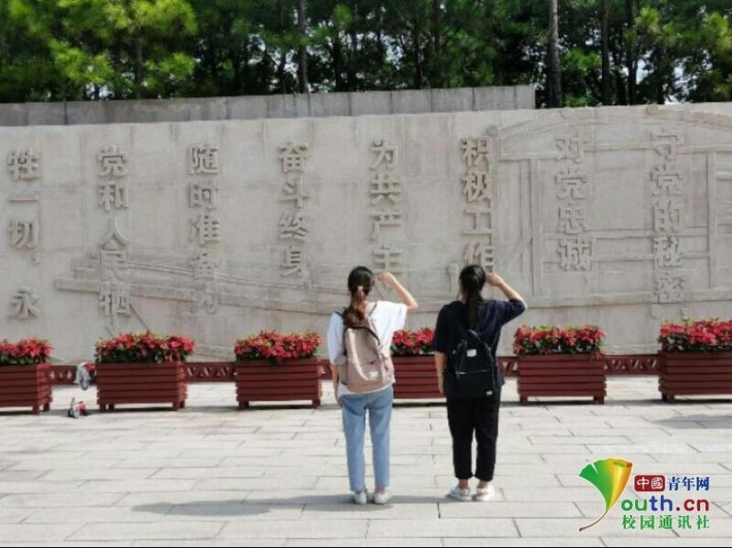 图为实践队员面对入党誓词以重温入团誓词表示对党的尊敬。中国青年网通讯员叶为怡摄