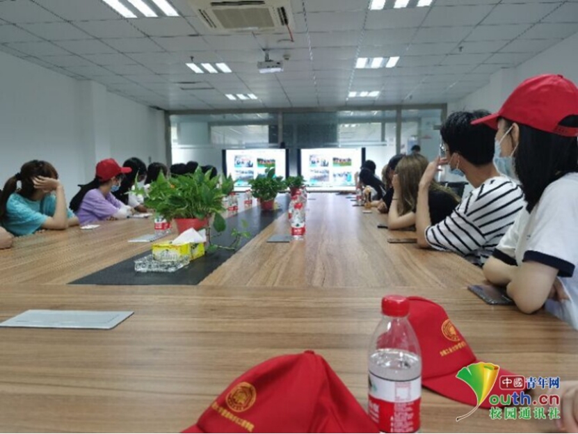 图为工作人员给实践队员介绍广德亚太公司。中国青年网通讯员 杨骏驰 摄