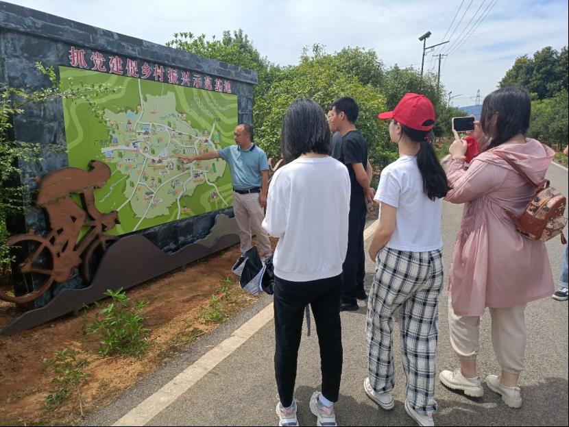 图为安徽省广德市东亭乡人民政府工作人员为学院赴广德“传承非遗、助力乡村振兴”实践团队讲解当地乡村振兴的发展规划。