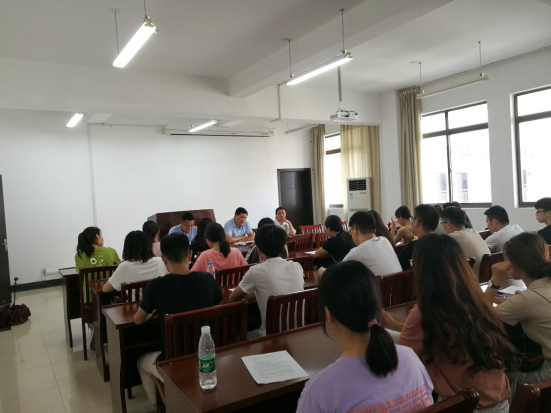 在汇文楼A308开展2019级研究生新生学科专业教育,2019级全体研究生新生参加,学院院长汪和平教授主讲,研究生秘书邹家华和研究生辅导员邢维迢列席会议。