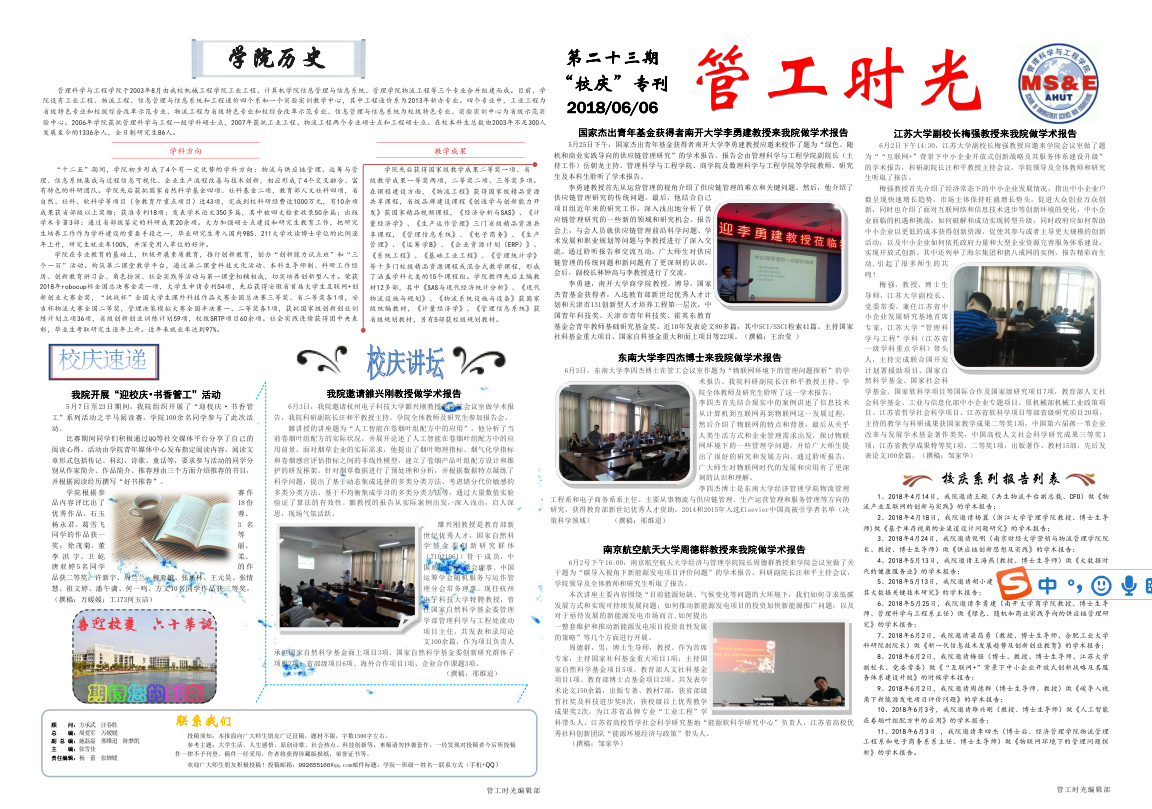 管工时光为博彩 院报宣传平台,负责学院传统媒体报纸的编辑、策划与排版,与月刊、半月刊的形式对博彩 近期重大活动事件进行综合报道,同时根据国家实事推出专刊。特设诗话管工环节,鼓励学生原创诗歌投稿,激发学生创作热情。以下为管工时光第二十三期第一、二版: