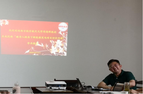 会议室做了关于题为“碳导入视角下新能源发电项目评价问题”的学术报告,科研副院长汪和平主持会议,学院领导及全体教师和研究生听取了报告。